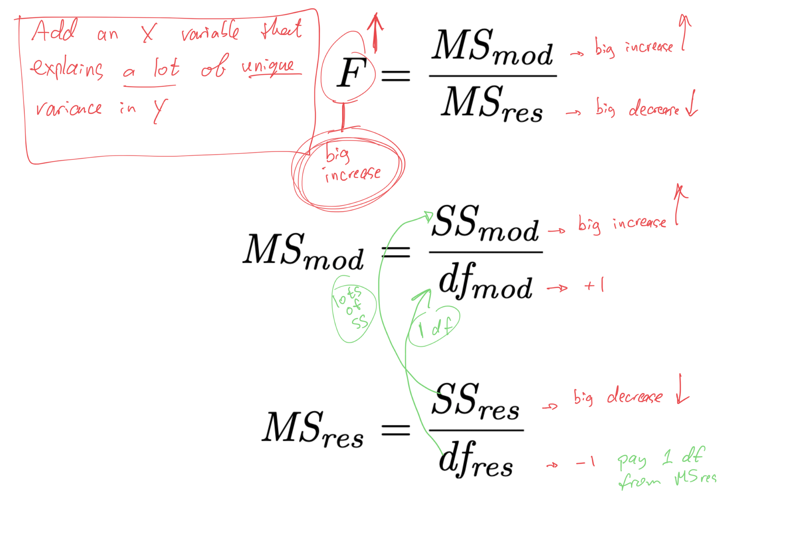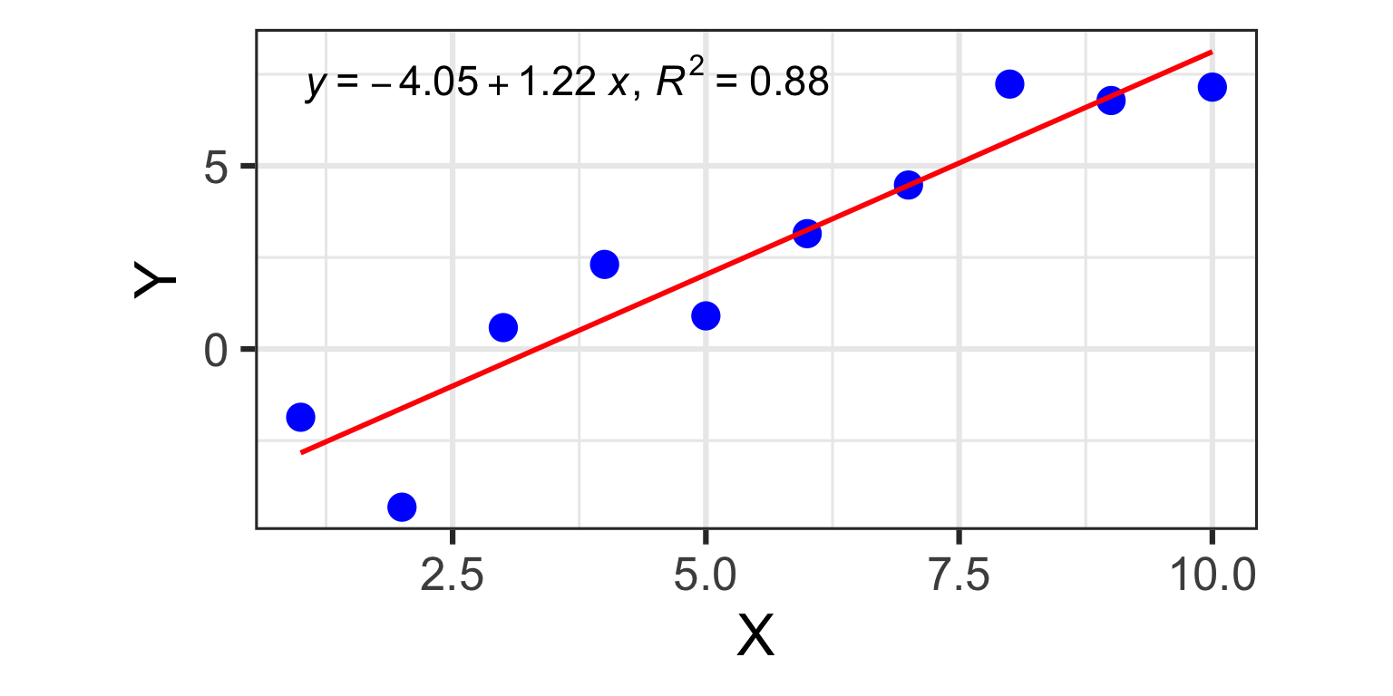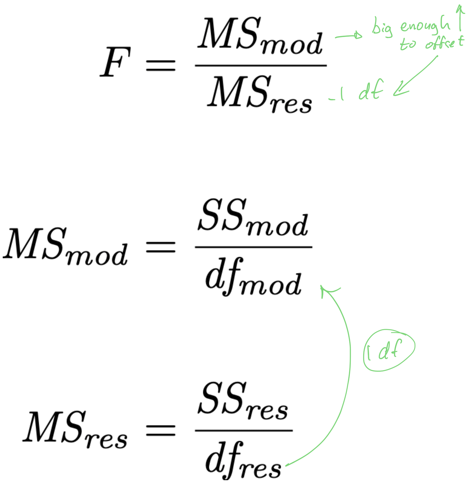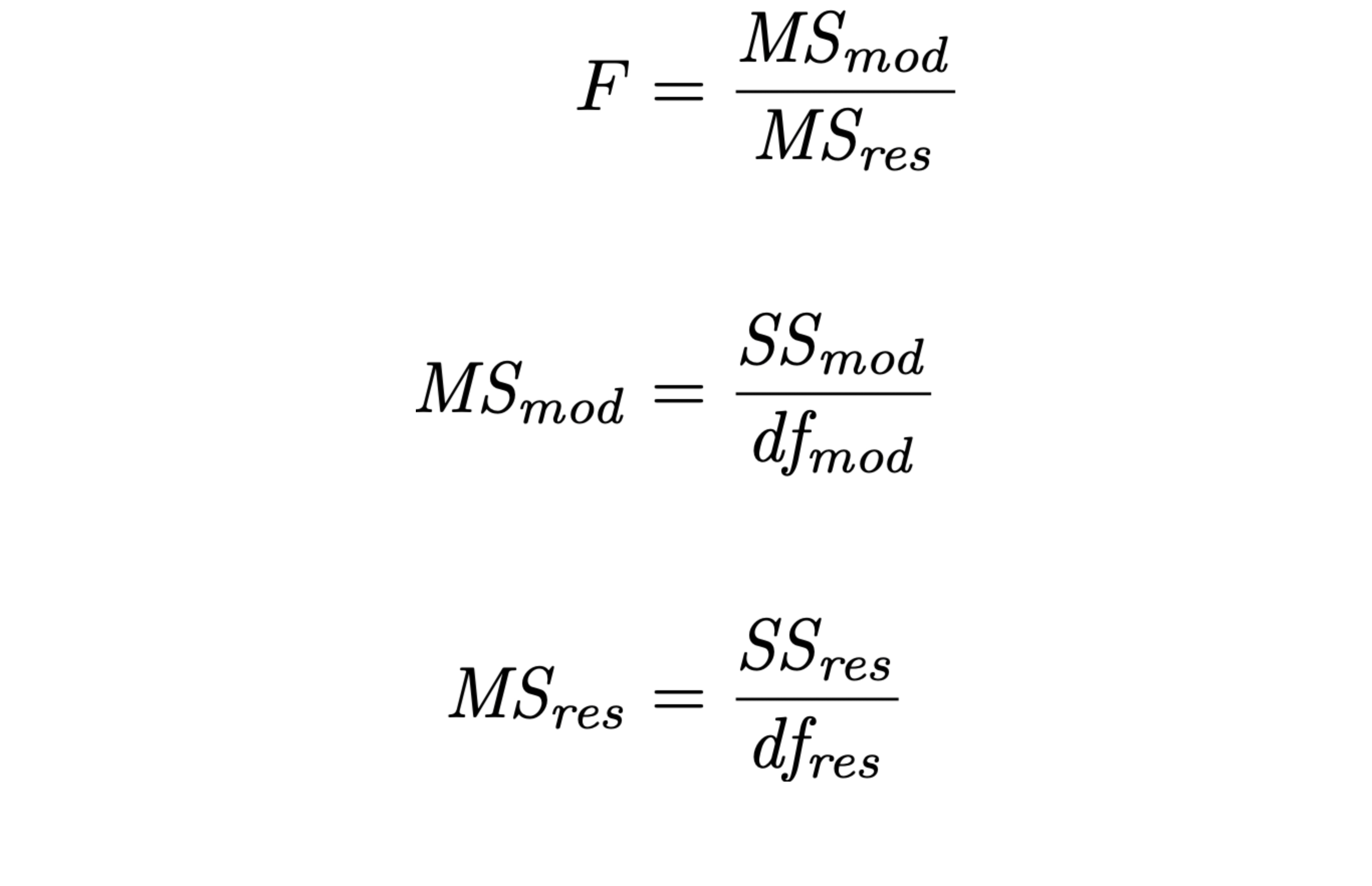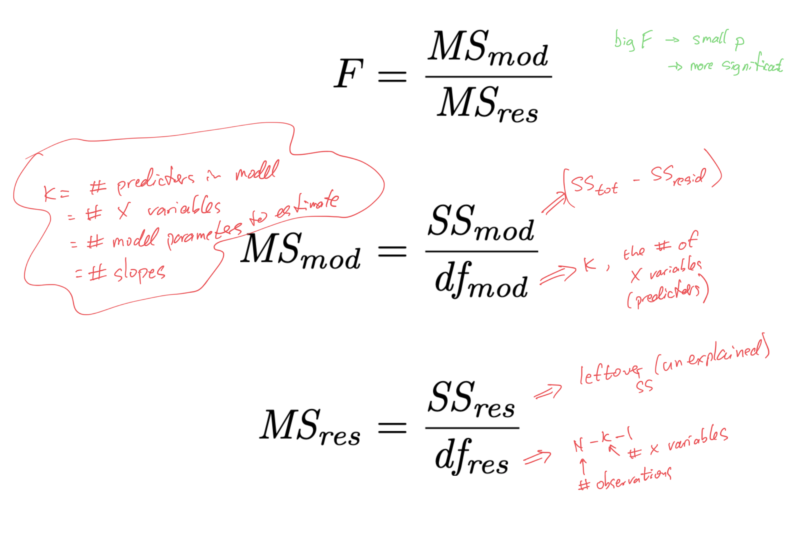 R^{2} = 1 - \frac{\mathit{SS_{res}}}{\mathit{SS_{tot}}} \text{adj.}R^{2} = 1 - \left( \frac{\mathit{SS_{res}}}{\mathit{SS_{tot}}} \times \frac{N-1}{N-K-1} \right)