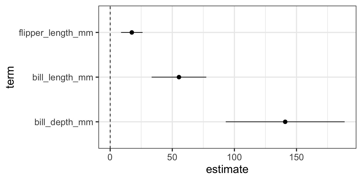 coefplot package to more easily plot coefficients and their confidence intervalslm() model objectbody_mass_g?