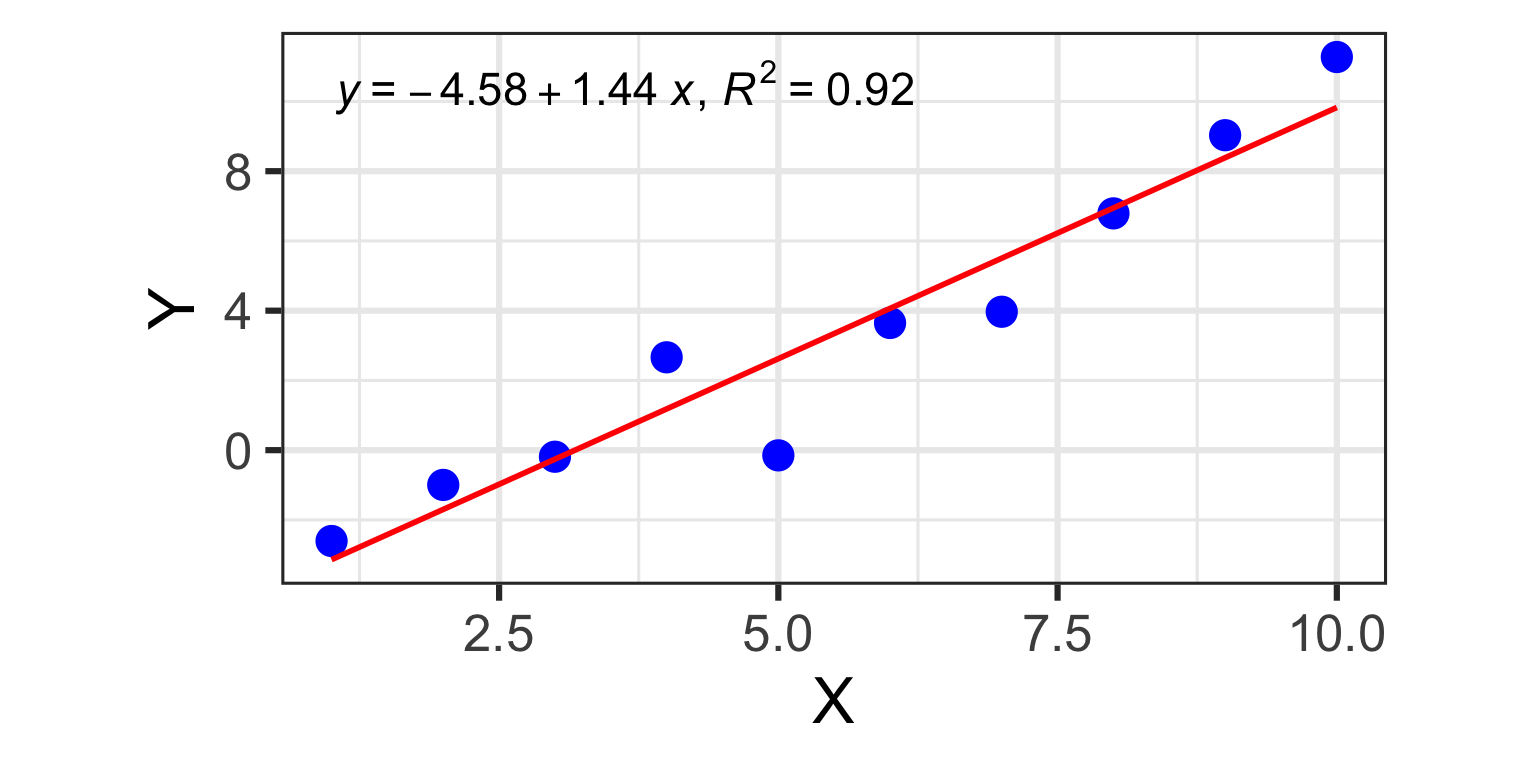 R^{2} = 1 - \frac{\mathit{SS_{res}}}{\mathit{SS_{tot}}} \text{adj.}R^{2} = 1 - \left( \frac{\mathit{SS_{res}}}{\mathit{SS_{tot}}} \times \frac{N-1}{N-K-1} \right)