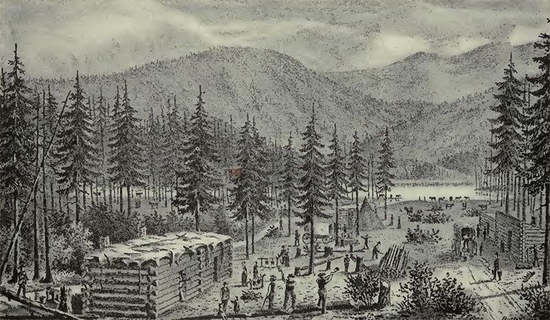 In 1846 the Donner and Reed families left Springfield, Illinois, for California by covered wagon. In July, the Donner Party, as it became known, reached Fort Bridger, Wyoming. There its leaders decided to attempt a new and untested rote to the Sacramento Valley. Having reached its full size of 89 people and 20 wagons, the party was delayed by a difficult crossing of the Wasatch Range and again in the crossing of the desert west of the Great Salt Lake. The group became stranded in the eastern Sierra Nevada mountains when the region was hit by heavy snows in late October. By the time the last survivor was rescued on April 21, 1847, 41 of the 89 members had died from famine and exposure to extreme cold.