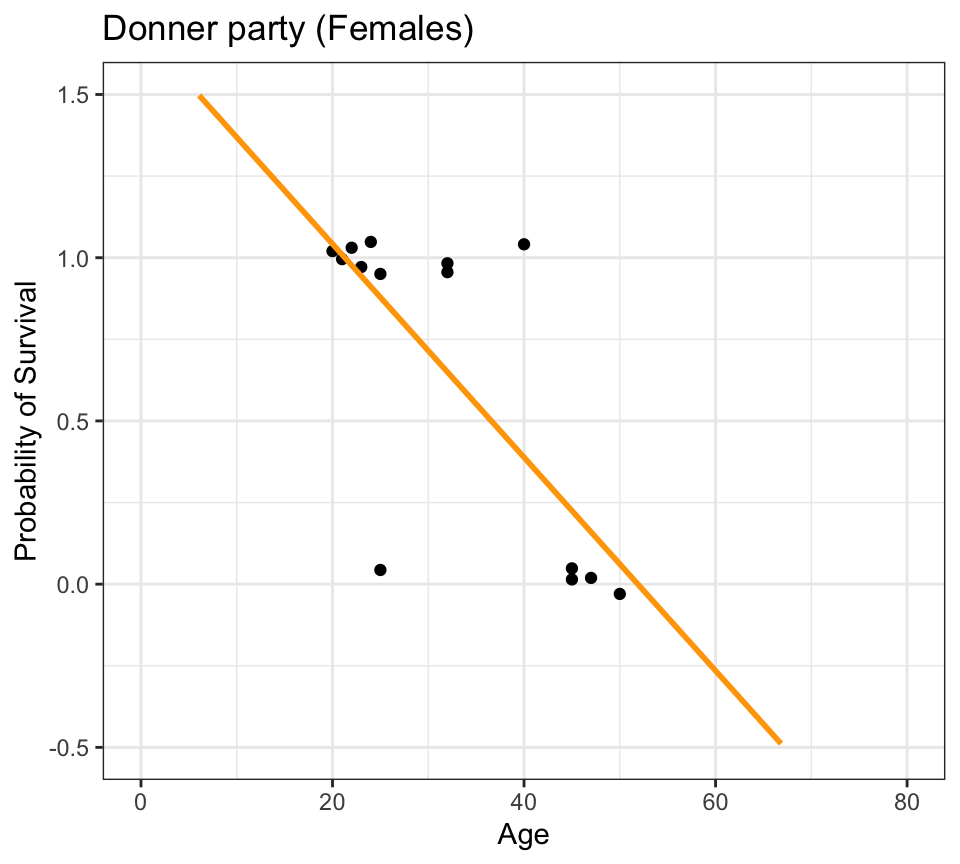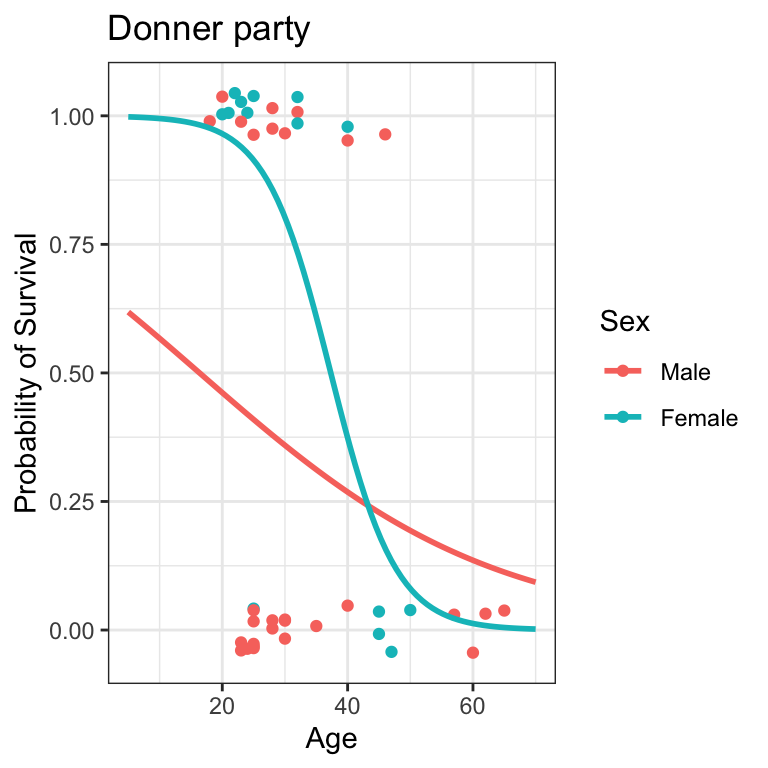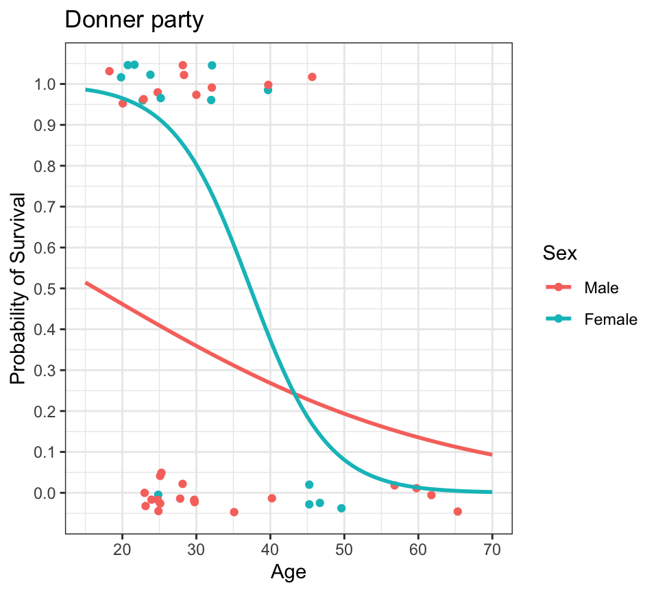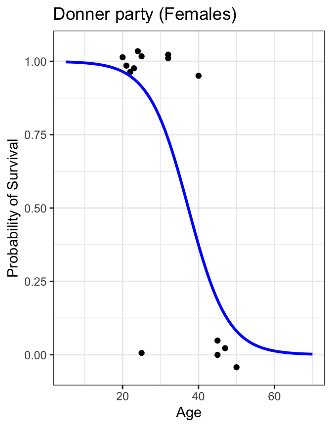 labs(title="Donner party (Females)", y="Probability of Survival") +