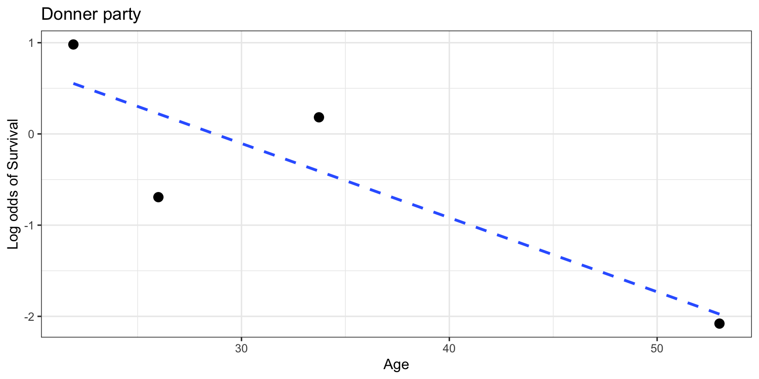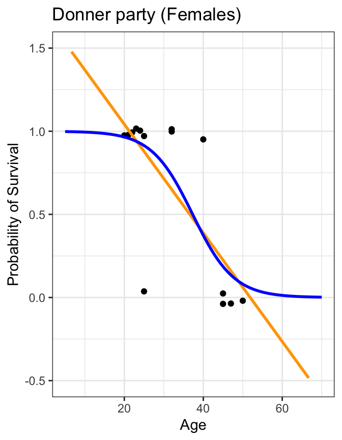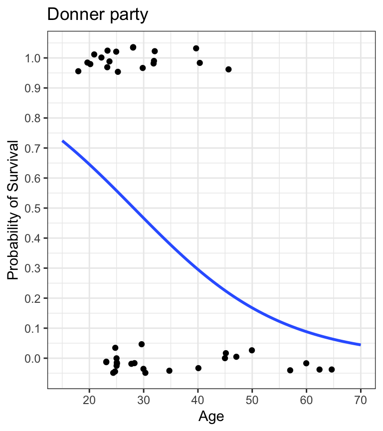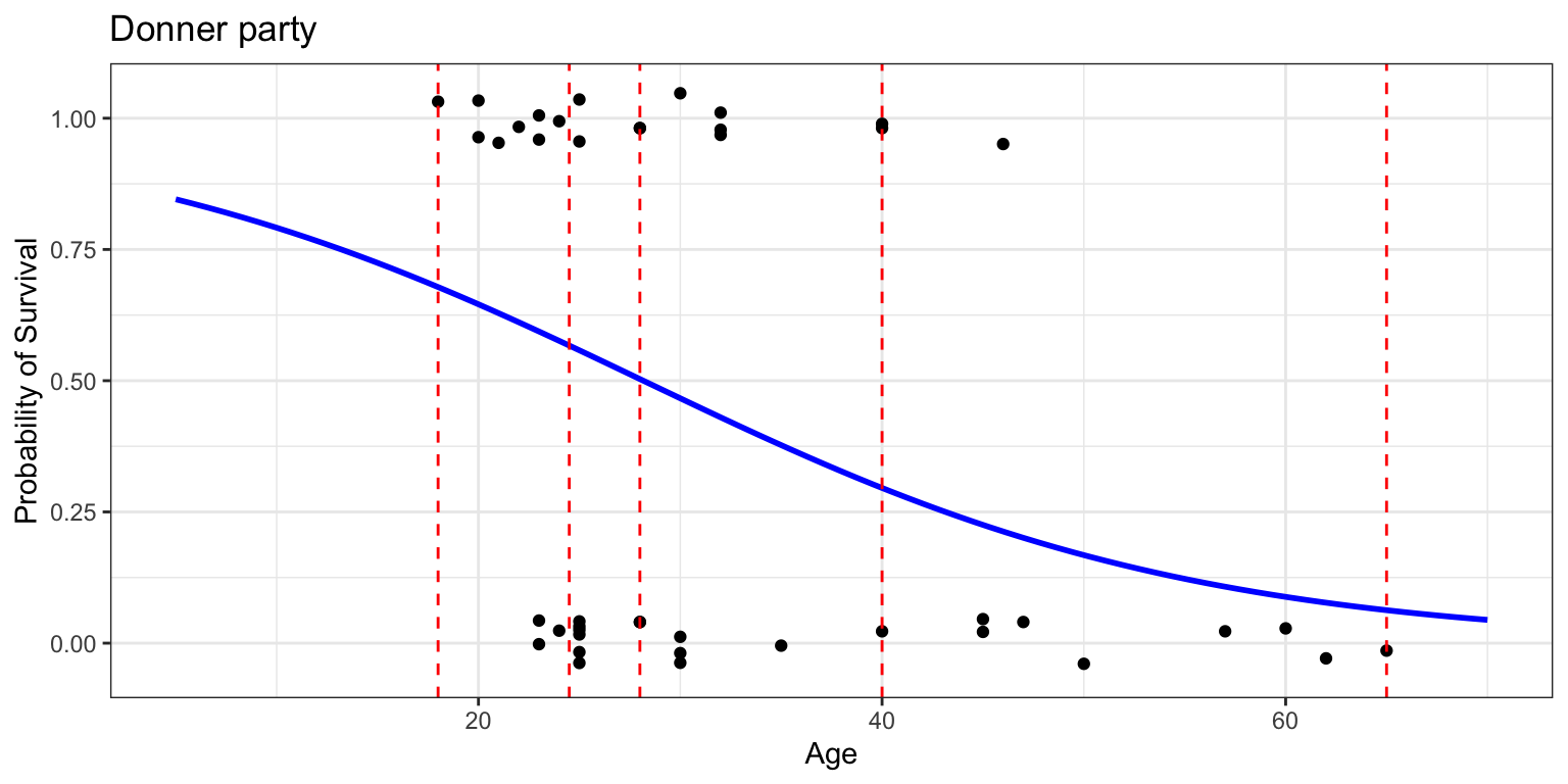 labs(title="Donner party (Females)", y="Probability of Survival") +