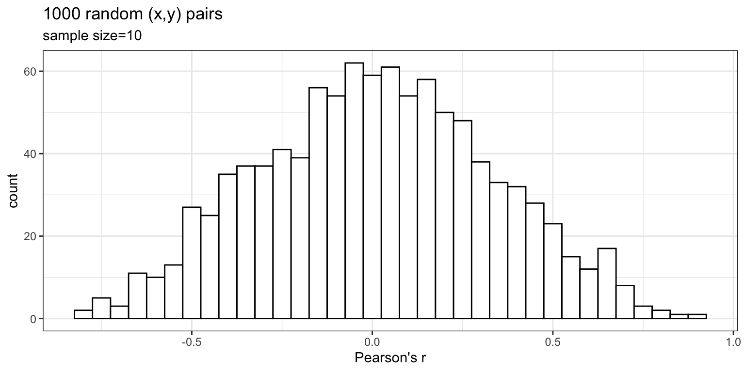 Randomly sampling numbers can produce a range of correlations, even when the actual correlation in the population is zero