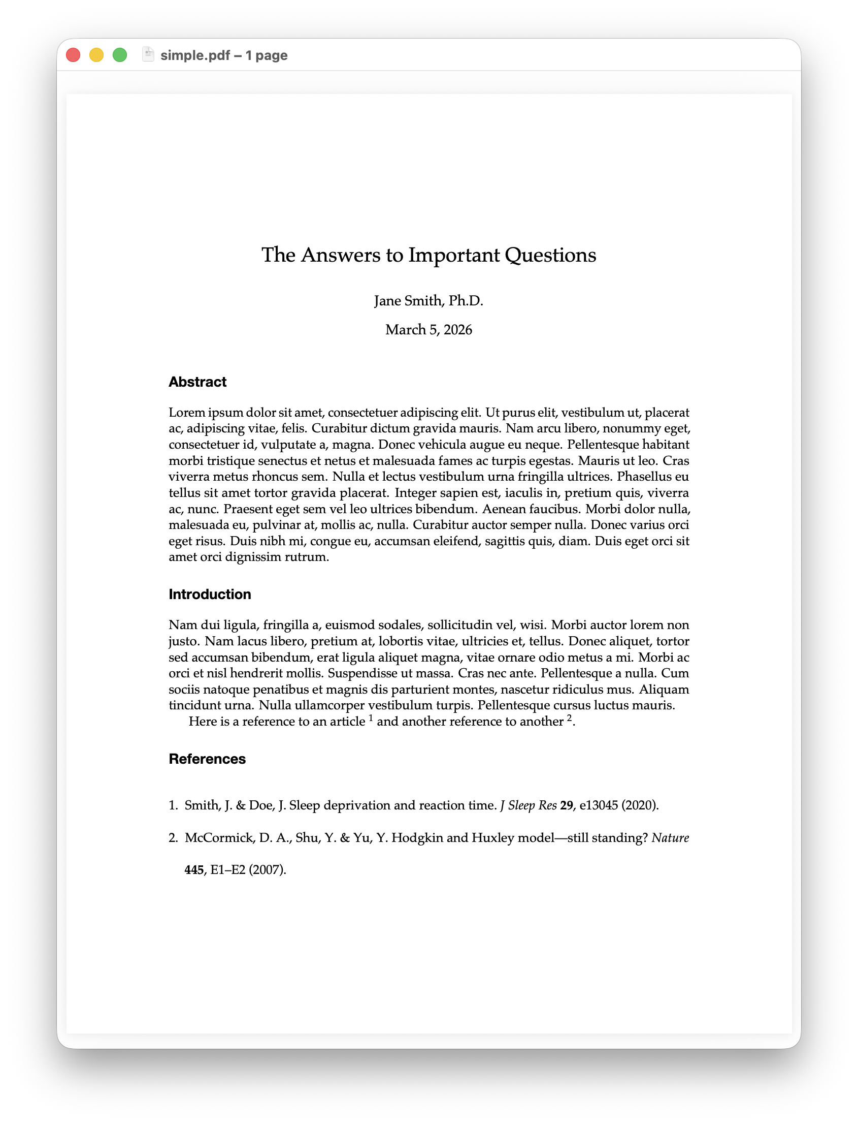 Here is a reference to an article \citep{smith2020sleep} and another reference to another \citep{mccormick2007hodgkin}.